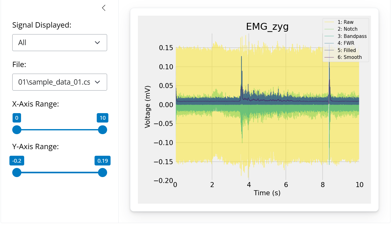 def plot_dashboard(path_names:dict, column_name:str, sampling_rate:float=1000.0, units:str='mV', file_ext:str='csv', use_mask:bool=False, show_legend:bool=True, auto_run:bool=True)Parameters: